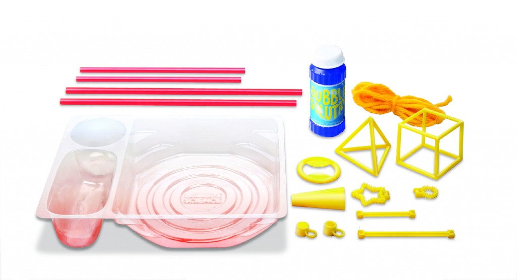 ΠΕΡΙΕΧΟΜΕΝΑ: Πλαστικός κρίκος x1, Χρωματιστός σπάγκος x1 , Δίσκος για φούσκες x1, Ράβδος σε σχήμα πυραμίδας x1, Ράβδος σε σχήμα κύβου x1 ,Διάλυμα για φούσκες x1, Μεγάλα πώματα για τις ράβδους x2, Επιστόμιο x1, Ράβδος σε σχήμα αστεριού x1, Στρογγυλή ράβδος x1, Κουμπωτά χερούλια για τις ράβδους x2, Μεγάλα ραβδιά για φούσκες x2, Μακριά καλαμάκια x2.