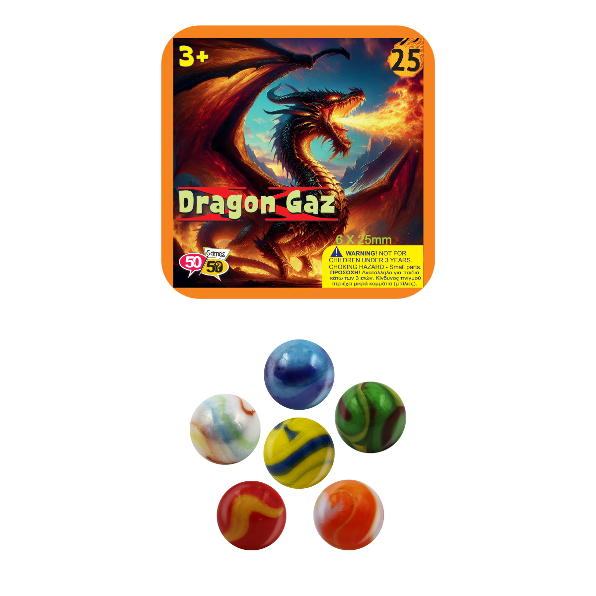 Η συσκευασία περιλαμβάνει 6 μεγάλους βόλους διαμέτρου 25mm, σε διαφορετικά σχέδια και χρώματα, κατασκευασμένους εξ ολοκλήρου από 100% γυαλί. Κάθε βόλος είναι ένα μικρό έργο τέχνης που ξεχωρίζει για τη λάμψη, τη διαφάνεια και την αισθητική του.