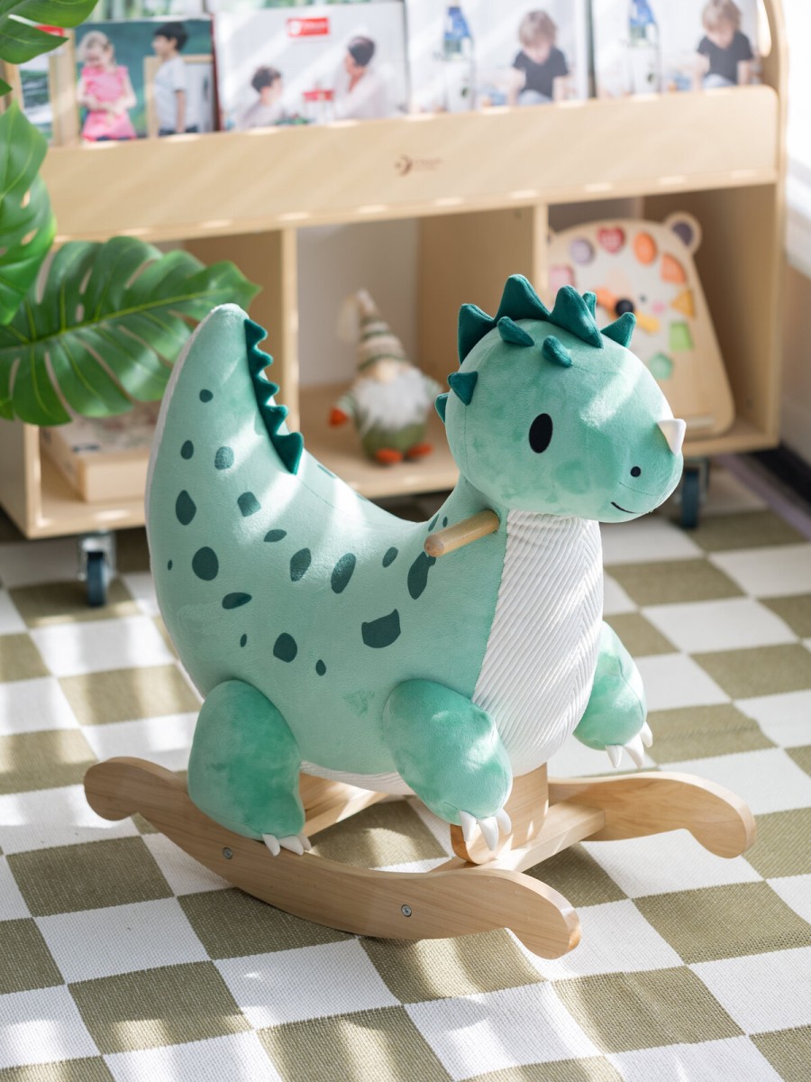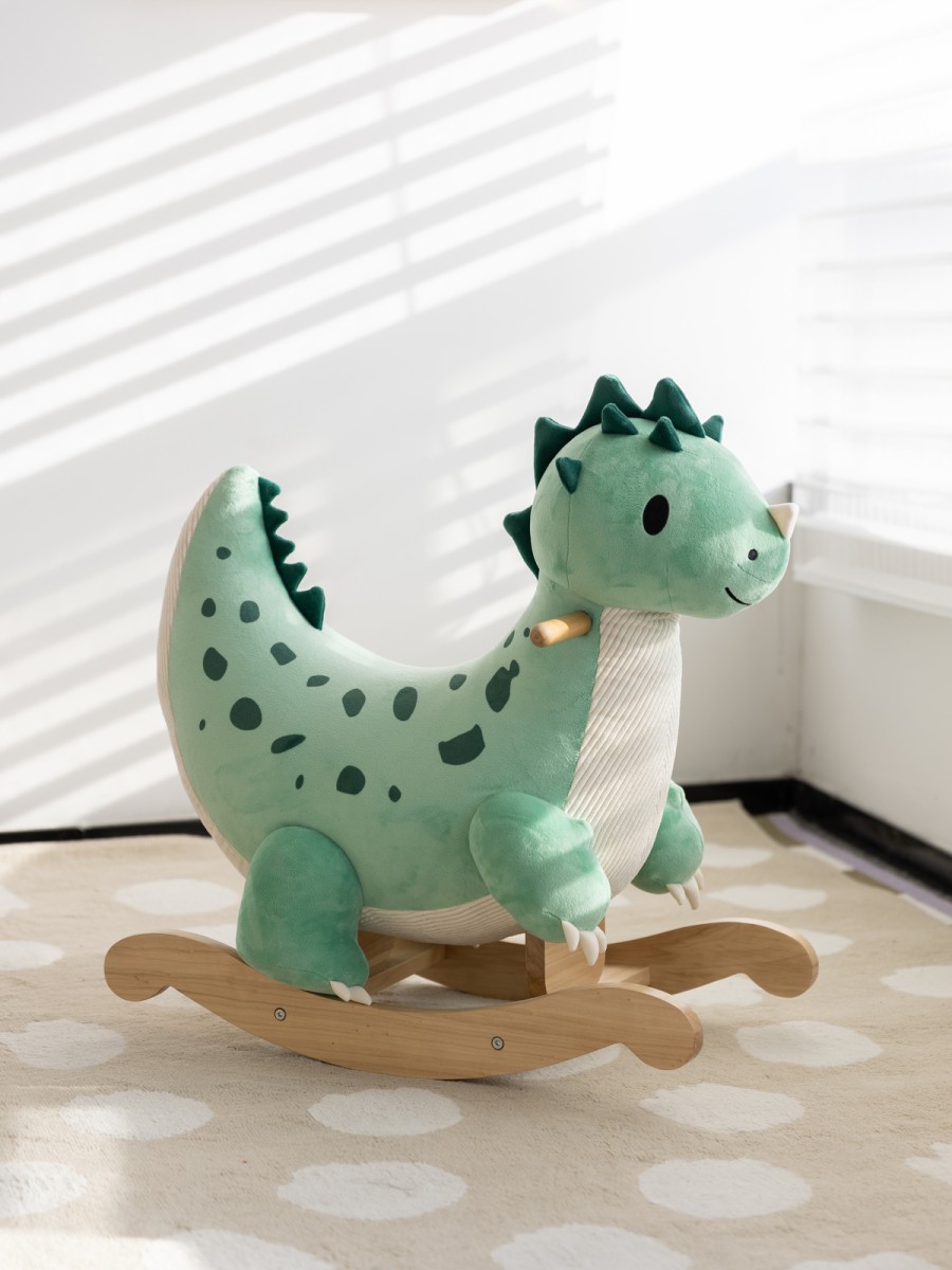 Αυτός ο χαριτωμένος ξύλινος κουνιστός δεινόσαυρος θα γίνει ο ιδανικός σύντροφος στις πρώτες βόλτες του μικρού σας μέσα στο σπίτι! Είναι κατασκευασμένος από βελούδινο ύφασμα, εξαιρετικά απαλό και άνετο στην αφή – ιδανικό για τα μικρά χεράκια των παιδιών! Ο σχεδιασμός του δεινόσαυρου είναι από τους αγαπημένους των παιδιών και υπόσχεται πολλές ώρες διασκέδασης με μια βόλτα! Παράλληλα, βοηθά στην ανάπτυξη της ισορροπίας και του συντονισμού καθώς τα παιδιά κρατούν τις λαβές και κουνιούνται μπρος-πίσω.
