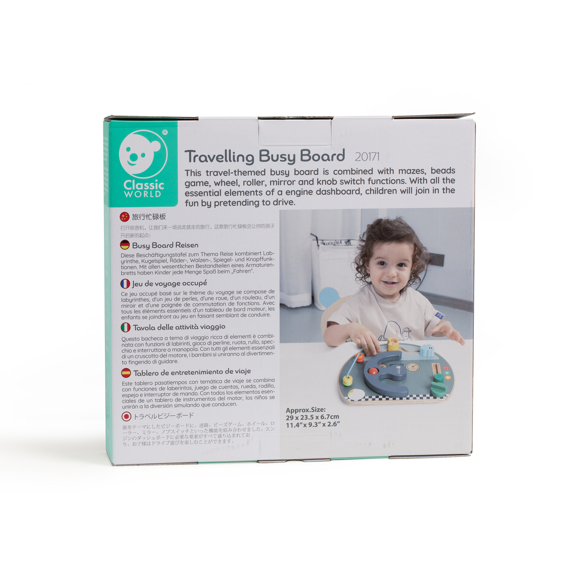 Αυτός ο ξύλινος πίνακας δραστηριοτήτων προσφέρει ατελείωτη διασκέδαση και μάθηση! Περιλαμβάνει λαβυρίνθους, παιχνίδι με χάντρες, τροχό, ρολό, καθρέφτη και διακόπτη με κουμπί. Με στοιχεία που θυμίζουν όχημα, τα παιδιά θα λατρέψουν να υποδύονται ότι οδηγούν, αναπτύσσοντας τη φαντασία τους και ενισχύοντας τις λεπτές κινητικές τους δεξιότητες.