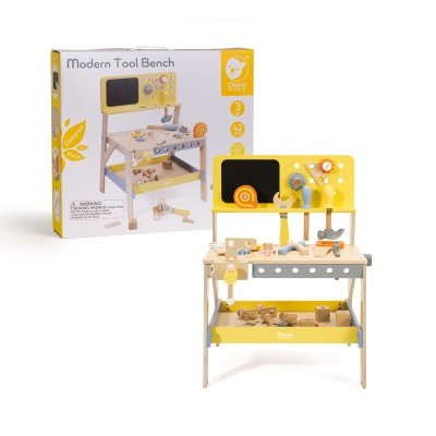 Ένας σύγχρονος, ολοκληρωμένος πάγκος εργαλείων που καλύπτει όλες τις ανάγκες ενός μικρού ξυλουργού. Περιλαμβάνει όλα τα απαραίτητα εργαλεία και αξεσουάρ. Τα παιδιά μπορούν να τοποθετούν και να γυρίζουν τα γρανάζια για να παρατηρήσουν τη μετάδοση κίνησης, να πριονίζουν και να κατασκευάζουν ελεύθερα δομές, αναπτύσσοντας έτσι τη λογική σκέψη και τη δημιουργικότητα. Τα παιδιά θα απολαύσουν πλήρως την τέχνη της ξυλουργικής!