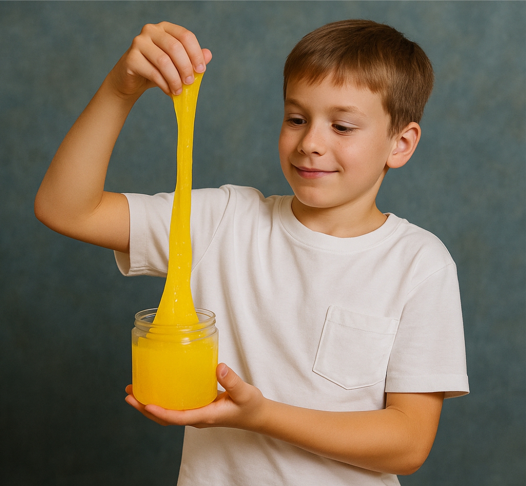 Η υφή της μοιάζει με ζελέ, αλλά σε αντίθεση με αυτό, δεν θρυμματίζεται ούτε κολλάει στα χέρια. Το παιχνίδι με slime βοηθά τα παιδιά να εξοικειωθούν με κολλώδεις υφές και προσφέρει μοναδικές αισθητηριακές εμπειρίες.