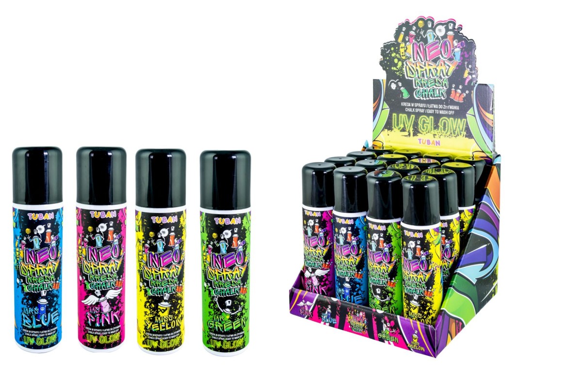 Διατίθεται σε 4 έντονα νέον χρώματα: μπλε, κίτρινο, πράσινο και φυσικά ροζ. Κάθε χρώμα παρέχει φωσφορίζον αποτέλεσμα, κάνοντας τα street art έργα σας να λάμπουν κάτω από UV φως!