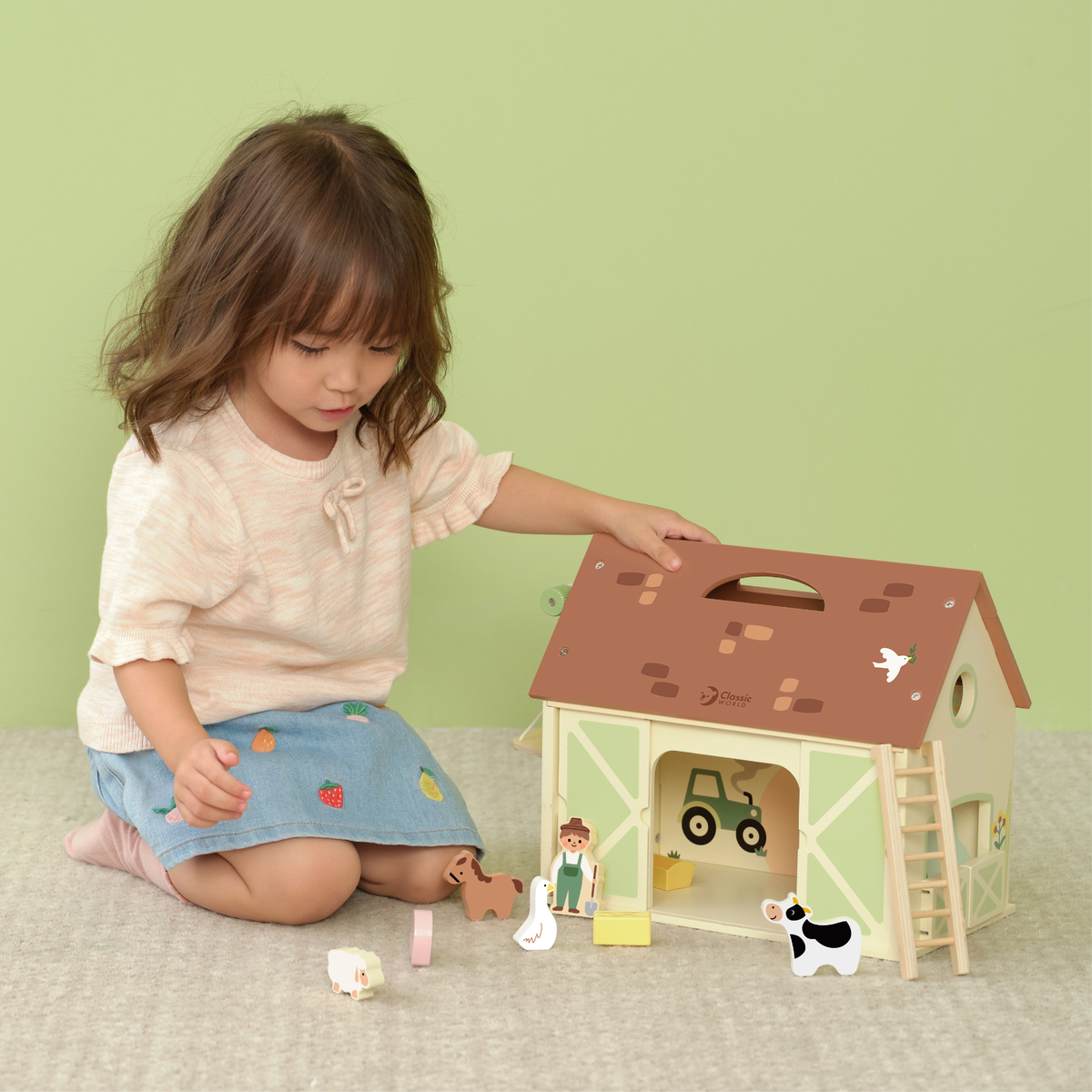 Ας περάσουμε μαζί μια μέρα στη φάρμα! Άνοιξε την πόρτα της φάρμας και δίπλωσε τον φράχτη για να δημιουργήσεις την αυλή! Τα παιδιά μπορούν να βοηθήσουν τον αγρότη να ταΐσει τα ζώα, να μετακινήσουν το σανό και να απολαύσουν μια ολοκληρωμένη μέρα γεμάτη διαδραστικό παιχνίδι στη φάρμα.