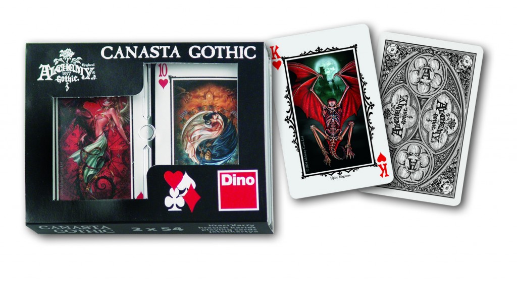 Ενα πρωτότυπο και εντυπωσιακό σετ διπλής τράπουλας Canasta (2x54 κάρτες) με gothic απεικονίσεις.