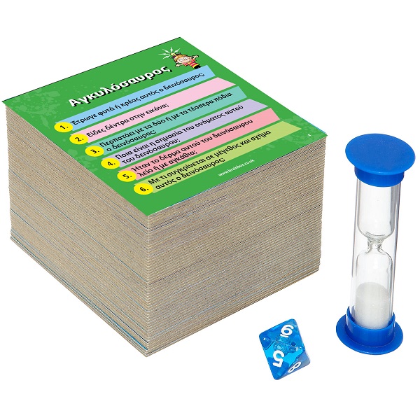 Ανακάλυψε τον κόσμο των δεινοσαύρων! Διάλεξε μία κάρτα μέσα από το BrainBox. Αναποδογύρισε την κλεψύδρα και προσπάθησε να τη μάθεις απ'έξω σε 10 δευτερόλεπτα! Τώρα ρίξε το ζάρι και απάντα στην αντίστοιχη ερώτηση. Αν απαντήσεις σωστά κρατάς την κάρτα, αν απαντήσεις λάθος βάζεις την κάρτα και πάλι μέσα στο BrainBox.