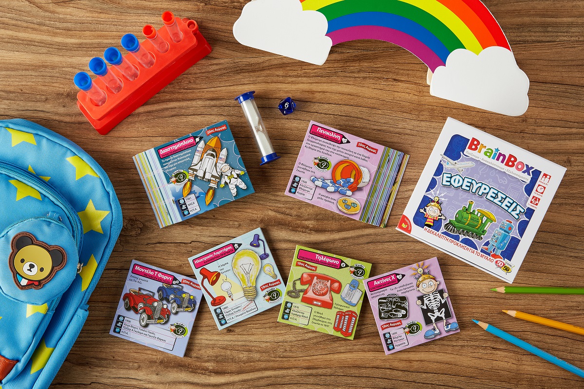 Γνώρισε τις πιο σημαντικές ή και παράξενες εφευρέσεις! Διάλεξε μια κάρτα μέσα από το BrainBox. Αναποδογύρισε την κλεψύδρα και προσπάθησε να μάθεις απ'έξω την κάρτα σε 10 δευτερόλεπτα! Τώρα ρίξε το ζάρι και απάντησε στην αντίστοιχη ερώτηση. Αν απαντήσεις σωστά κρατάς την κάρτα, αν απαντήσεις λάθος βάζεις την κάρτα πάλι μέσα στο BrainBox.