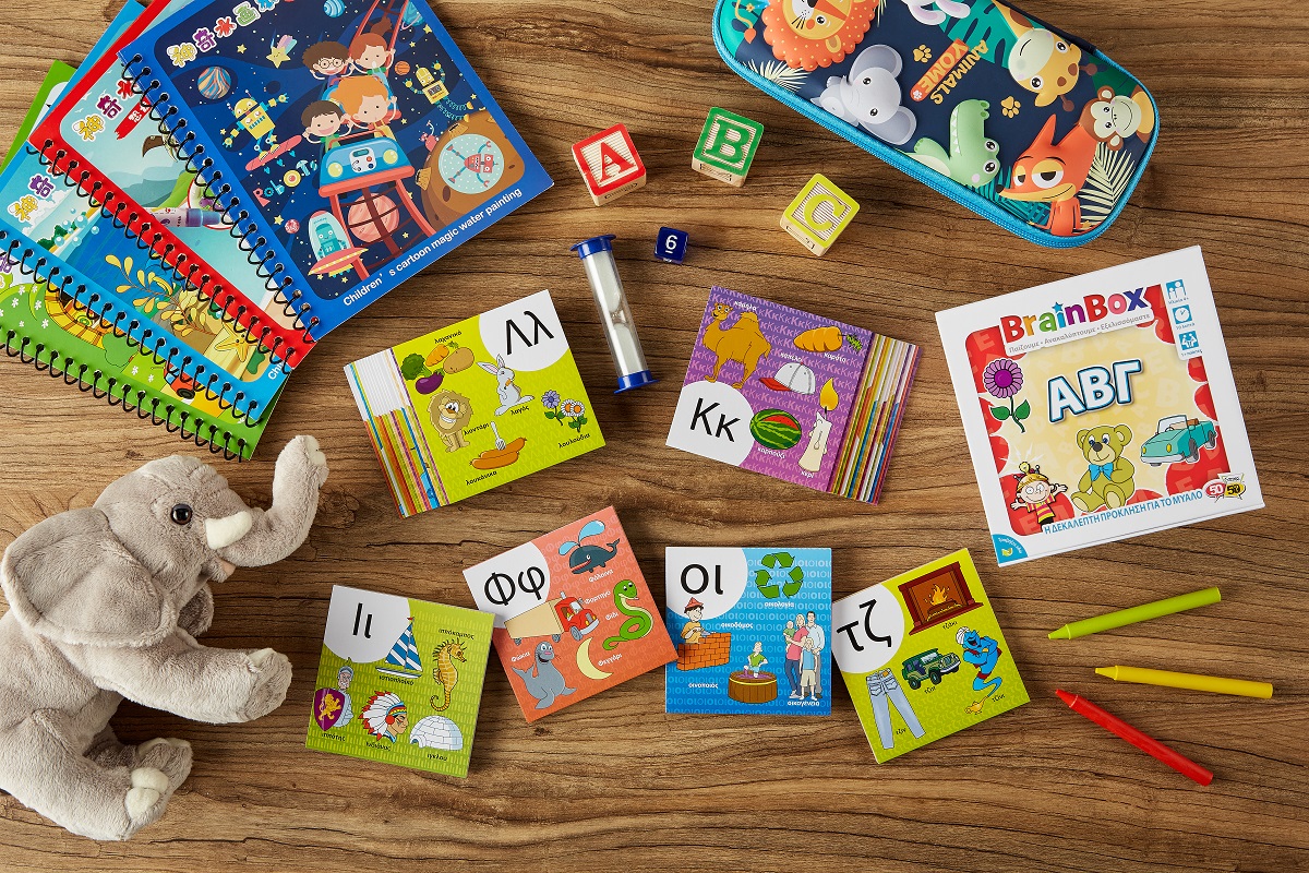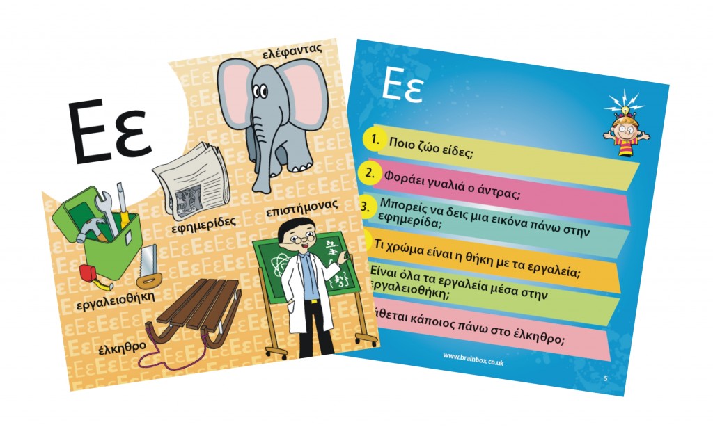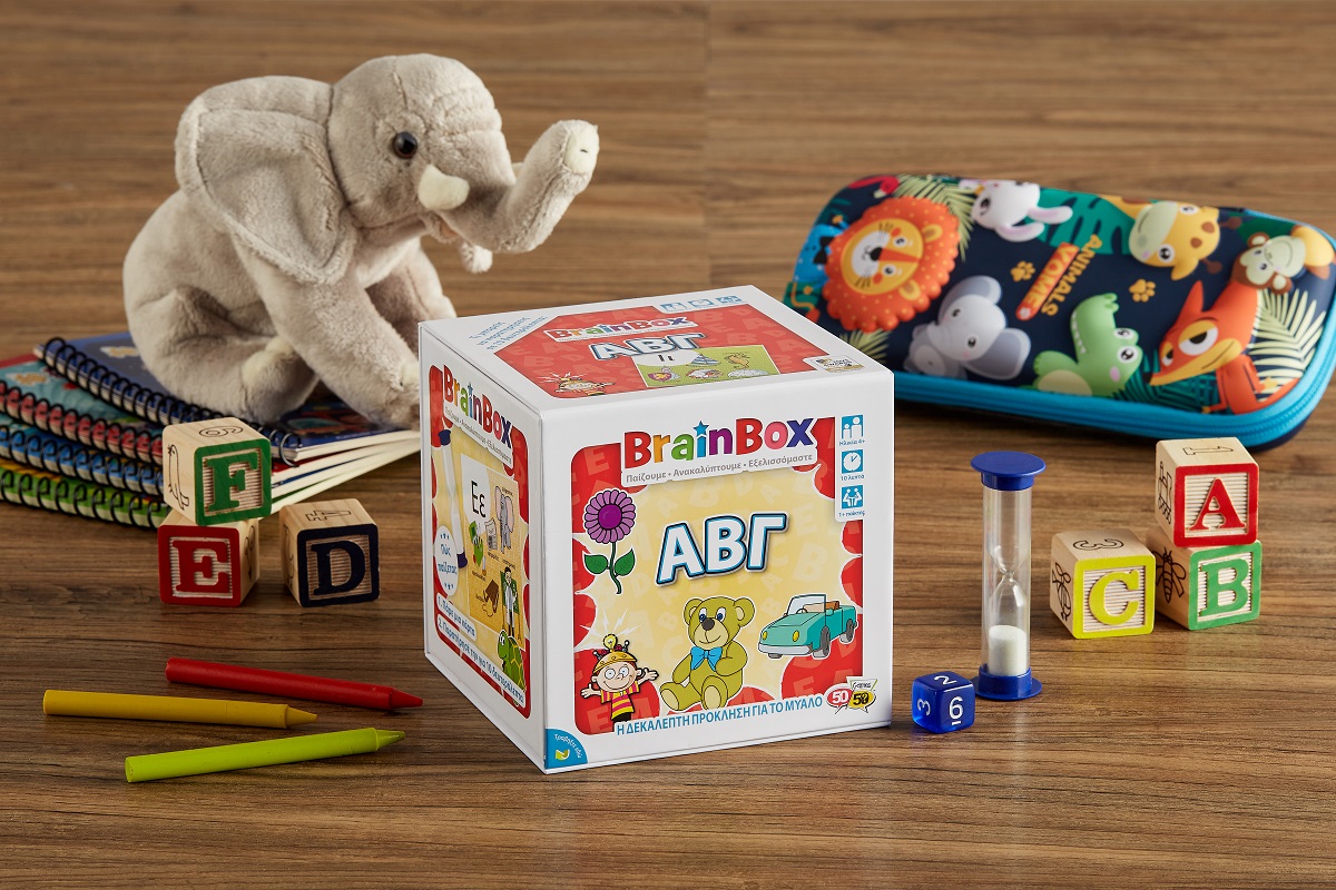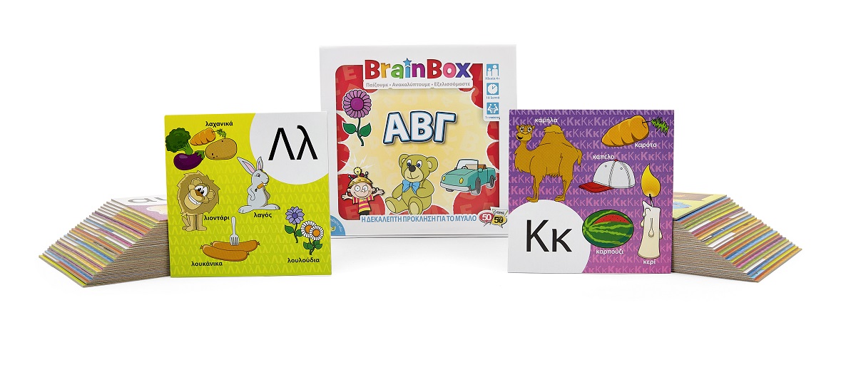 Μάθε την Άλφα-Βήτα μέσα από όμορφες εικόνες με ζωηρά χρώματα! Διάλεξε μια κάρτα μέσα από το BrainBox. Αναποδογύρισε την κλεψύδρα και προσπάθησε να μάθεις απ'έξω την κάρτα σε 10 δευτερόλεπτα! Τώρα ρίξε το ζάρι και απάντησε στην αντίστοιχη ερώτηση. Αν απαντήσεις σωστά κρατάς την κάρτα, αν απαντήσεις λάθος βάζεις την κάρτα πάλι μέσα στο BrainBox.
