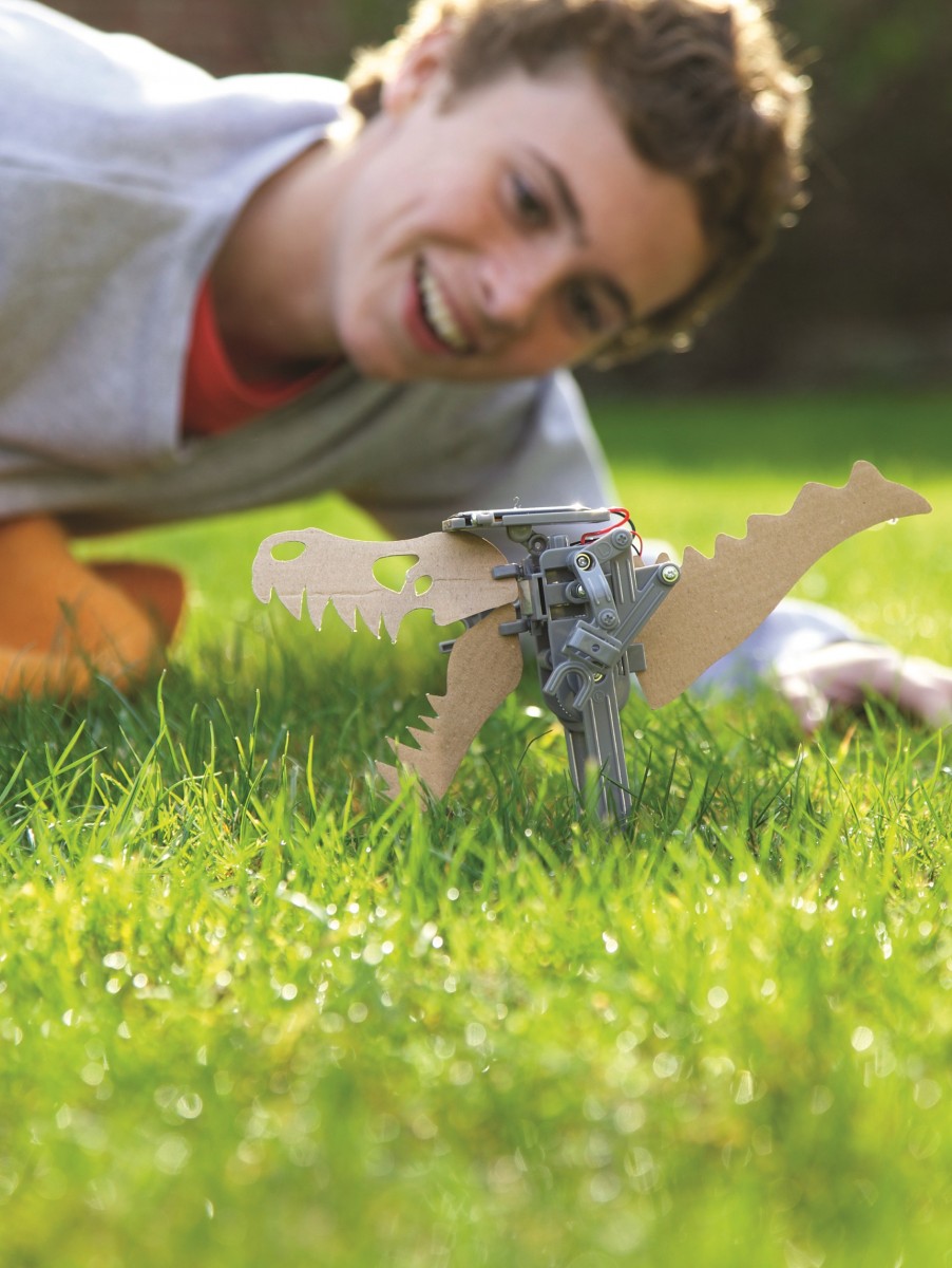 Κατασκεύασε ένα ρομπότ το οποίο κινείται με την βοήθεια του ήλιου. Τοποθέτησε τον ηλιακό συλλέκτη και θα εκπλαγείς από το αποτέλεσμα: Δεν έχει μπαταρίες και όμως περπατάει! Μπορείς να το μετατρέψεις και σε ρομπότ δεινόσαυρο. Διάβασε τα ψυχαγωγικά στοιχεία που περιλαμβάνονται στις οδηγίες και μάθε συναρπαστικές πληροφορίες για την ηλιακή ενέργεια.