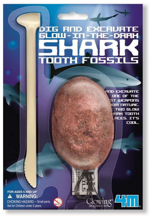 Κάνε ανασκαφή! Σπάσε το αυγό με το ειδικό σφυράκι και βρες δυο δόντια καρχαρία. Με το σχοινάκι που περιέχει μπορείς να φτιάξεις δυο καταπληκτικά κολιέ. Μόλις τα δόντια του καρχαρία αρχίσουν να εμφανίζονται, χρησιμοποίησε το ειδικό εργαλείο για να αφαιρέσεις τον γύψο που τα περιβάλλει.